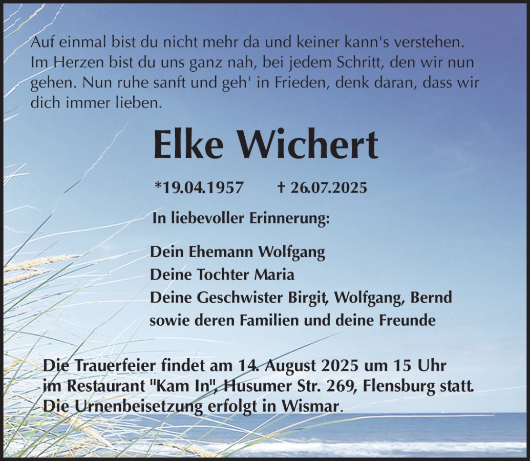 Es war so unbeschreiblich schön, dass ich bei der Trauerfeier in Wismar spürte, dass du an meiner Seite warst und wir beide glücklich waren, dass es uns wieder gelungen war, allen ein Lächeln ins Gesicht zu zaubern.